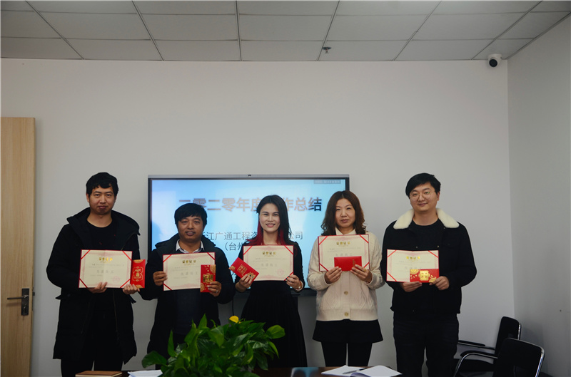 接下来,公司对章海玲、邵增跃、金巍、颜莺莺、任亦志5位先进员工进行了表彰,并颁发了证书和奖金。