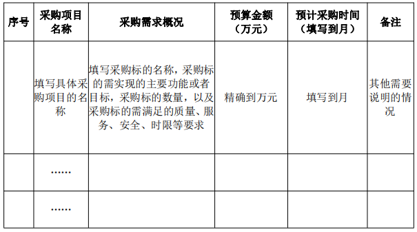 为便于供应商及时了解政府采购信息,根据《财政部关于开展政府采购意向公开工作的通知》(财库〔2020〕10号)等有关规定,现将(单位名称) 年 (至) 月采购意向公开如下: