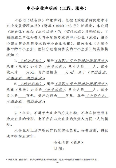 附:1.中小企业声明函