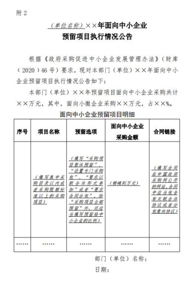 2.面向中小企业预留项目执行情况公告