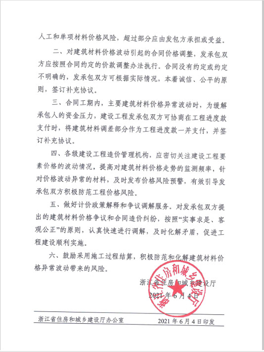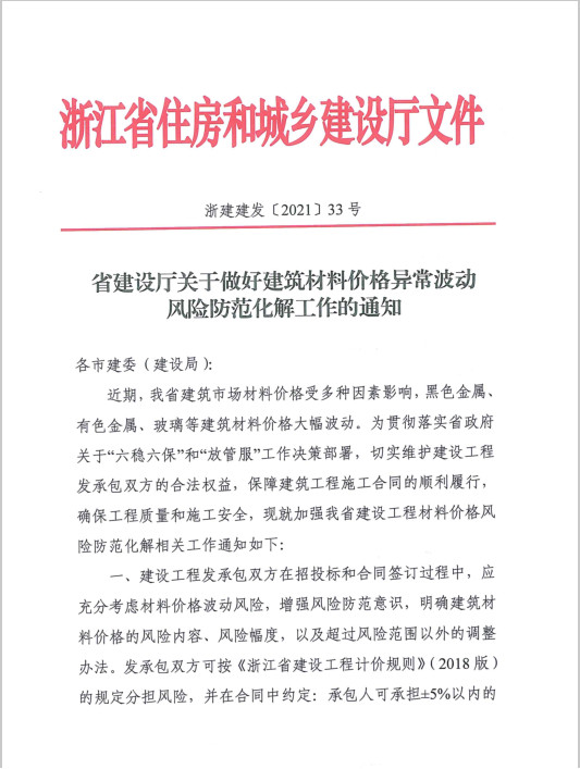 省建设厅关于做好建筑材料价格异常波动风险防范化解工作的通知